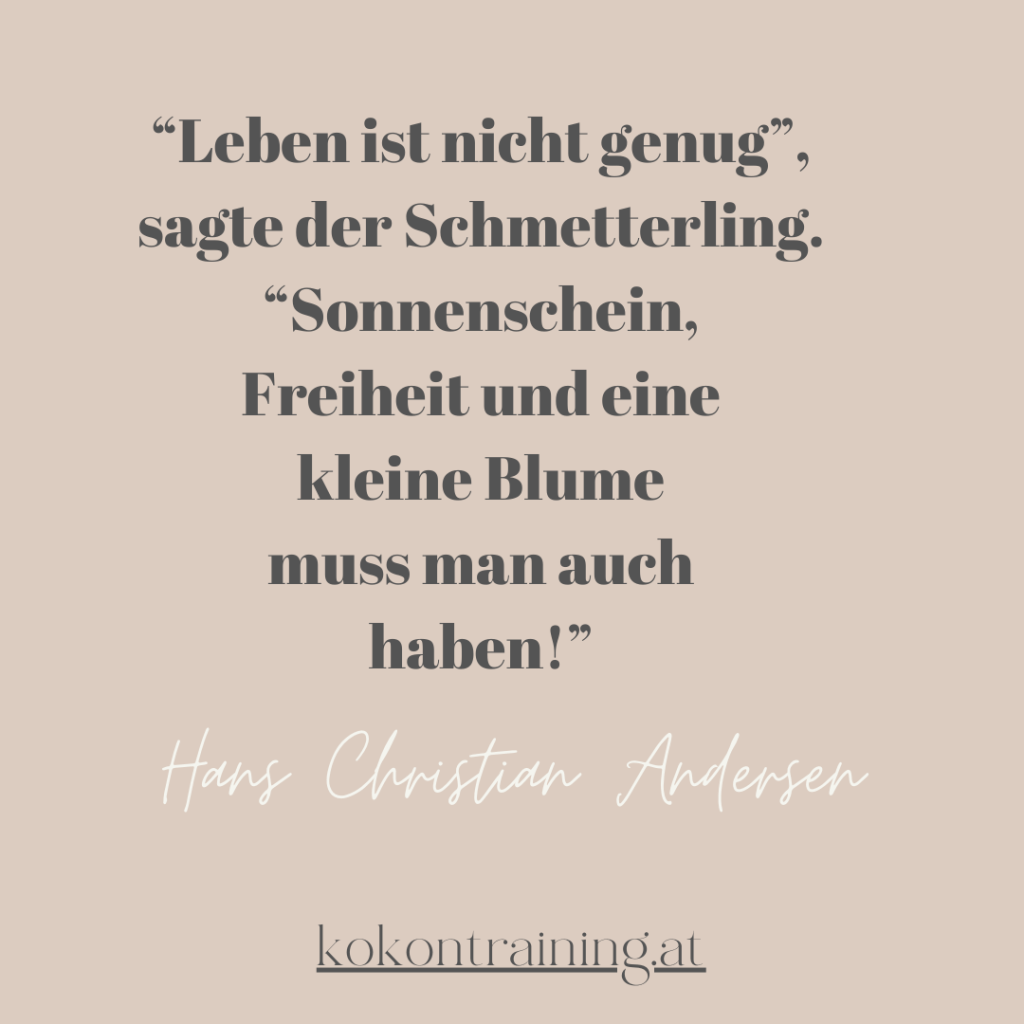 Ich habe diesen Spruch von Hans Christian Andersen diese Woche beim Entrümpeln meiner Bücher als Lesezeichen gefunden und er beschreibt genau das, was ich unter Life-Balance verstehe. Das Leben ist der Kern mit seinen Zielen, aber ohne Sonnenschein, Freiheit und eine Blume, also Ressourcen, ist das Leben nicht genug. Vielleicht habe ich also meine Ziele zu starr verfolgt, ohne die Ressourcen um mich zu beachten. Dazu gehören auch Beziehungen zu Menschen, meinen engsten Freund*innen und der Familie. Das letzte Jahr war sehr stark von Arbeit geprägt und ich habe manchmal das Gefühl dafür verloren, auch andere Aspekte wichtig zu nehmen.